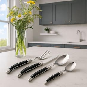 Além do visual sofisticado, os talheres são compatíveis com máquina de lavar louça, proporcionando praticidade e facilitando a rotina.