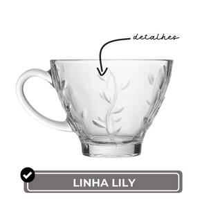 Jogo 12 Xícara de Chá de Vidro Flores Clear Lily 220ml Em Casa Tem