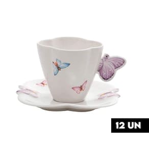 Jogo 12 Xícaras de Café com Pires Borboletas 100ml Wolff