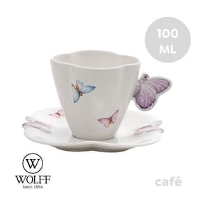 Xícara de Café em Porcelana com Pires Borboletas 100ml Wolff