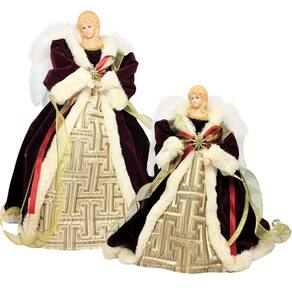 -01 Unidade Anjo Decorativo Ponteira de Árvore de Natal Luxo 30cm, Roupa em Veludo Vinho e Dourado