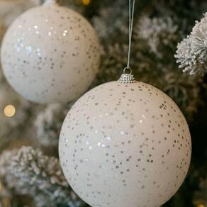 Jogo com 2 Bolas de Natal Brancas em Glitter e Lantejoulas 12cm Luxo