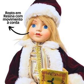 -01 Boneco Menina Coral Natalino Musica à Corda 43cm Vinho e Creme Luxo