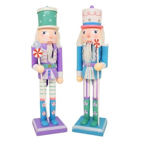 Jogo 2 Bonecos Quebra Nozes Decor Madeira Candy Color 30cm