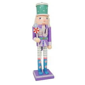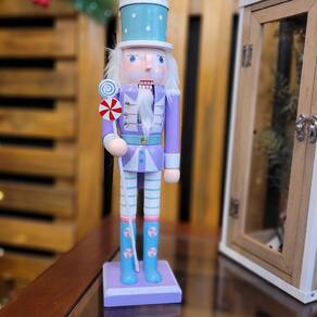 Adicione um toque lúdico e festivo à sua decoração com este boneco quebra-nozes temático no estilo candy! Com 30 cm de altura, ele é confeccionado em madeira e pintado em vibrantes tons de azul e roxo, proporcionando charme e cor à sua decoração natalina. Sua boca articulada é um detalhe clássico que traz autenticidade à peça.