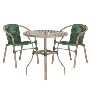 Composto por cadeiras de alumínio tramadas em corda náutica e uma elegante mesa com tampo ripado, esse conjunto une sofisticação e resistência em cada detalhe.