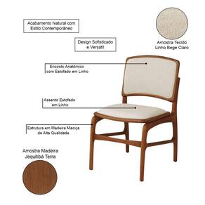 AS IMAGENS SÃO MERAMENTE ILUSTRATIVAS E PODEM SOFRER VARIAÇÕES DE COR E PEQUENOS DETALHES DE ACORDO COM O SEU MONITOR, ILUMINAÇÃO DO AMBIENTE E ATÉ MESMO A SUA PERCEPÇÃO VISUAL.Jogo 2 Cadeiras de Jantar FlorenÃa em Madeira Jequitibà Terra Encosto em Tecido Premium Linho Bege