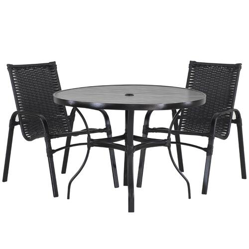 01 Mesa Roma Adaptada com tampo ripado de 80 cm de diâmetro