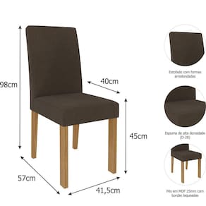 Está buscando uma opção de qualidade para a sua sala de jantar? As cadeiras Maia são uma ótima opção pois a sua estrutura é em mdf com pintura u.v, o assento e encosto possui espumas de alta densidade proporcionando maior conforto. Com um design inovador, a Cimol busca sempre um estilo moderno para o seu ambiente! Acabamento da Estrutura: Pintura Almofada do assento: Fixa Altura do assento até o chão: 45.0000 Ambiente Principal: Sala de Jantar codigo_ean: 7909903036785 Complexidade da Montagem: Média: pode ser montado por mais de uma pessoa e/ou necessite de maior conhecimento para montagem Cor: Marrom/Mascavo Cor: Marrom/Mascavo Cor do Produto: Marrom/Mascavo Enchimento do Assento: Espuma D-20 Enchimento do Encosto: Espuma D-20 Escala de Brilho: Semi-Brilho Estrutura do Assento: MDF/Espuma Itens Inclusos: 2 Cadeiras e Manual de Montagem Manual de Especificação Técnica: https://product-hub-prd.madeiramadeira.com.br/722458/documents/2344ec01-49c9-4982-b3fb-70b84e35d188quemademontagemcadeiramaia.pdf Manutenção: Para manter seu móvel novo por muito mais tempo, evite locais úmidos, mantenha-o distante de líquidos. Para limpá-lo com segurança utilize uma flanela seca sem produtos abrasivos Material da Base: MDF Necessita Montagem: Sim Origem do Produto: Nacional Peso: 10 kg Possui Rodízio: Não Recomendações de Uso, Manutenção e Limpeza: Para manter seu móvel novo por muito mais tempo, evite locais úmidos, mantenha-o distante de líquidos. Para limpá-lo com segurança utilize uma flanela seca sem produtos abrasivos Sistema de Montagem: Parafusos, porcas e minifix Tipo de Assento: Fixo Tipo de Encosto: Fixo Ean: 7909903036785