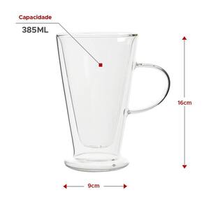Jogo 2 Canecas de Vidro Parede Dupla Grande Café Chá 385ml Novidade para a sua casa, esses são as famosas canecas de parede dupla ou camada dupla que vão deixar seu cantinho do café ainda mais charmoso e sofisticado, o sistema de parede dupla além de dar o visual de flutuação do líquido faz com que você não toque diretamente no vidro onde está o líquido, tornando assim o momento mais confortável e relaxante. As xícaras são desenvolvidas em vidro que suporta altas temperaturas e resistência a variações de temperaturas, além disso também são compatíveis com as cafeteiras mais populares do mercado Confira se as dimensões do compartimento da sua cafeteira são compatíveis com o tamanho da xícara . PRINCIPAIS DESTAQUES - Parede Dupla- Capacidade 385ml - Kit com 2 peças- Ideal para bebidas longas como Cappuccino e Chá- Muito bem embalado para chegar perfeito até a sua casa- Dimensões 16 x 9 cm altura x largura
