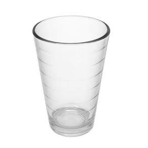 Este copo de vidro é adequado para servir diversas bebidas, como água, suco e refrigerante. O design apresenta um conjunto de anéis em relevo que proporcionam uma pegada mais firme e confortável, além de adicionar um elemento estético discreto à peça.