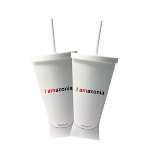2 Copos Com Tampa E Canudo Personalizados Eco I Amazônia Kit eco com copos eco personalizados para ajudar o meio ambiente. Adote o seu copo e evite descartáveis. Juntos somos mais fortes. Especificações: Material: Poliestireno Acrílico PS , Altura: 14,5 cm, Diâmetro: 9,5 cm, Capacidade: 550 ml, Cor: Branco, Quantidade: 2 peças