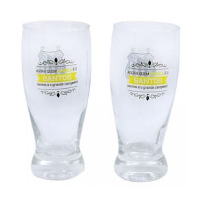 Jogo com 2 copos do tipo lager de vidro capacidade 350ml estampado com brasão do Santos.