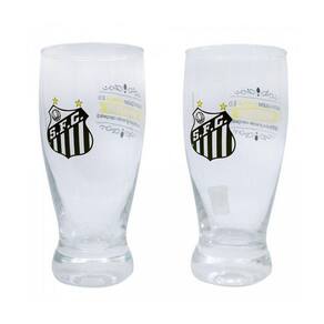 Jogo com 2 copos do tipo lager de vidro capacidade 350ml estampado com brasão do santos.