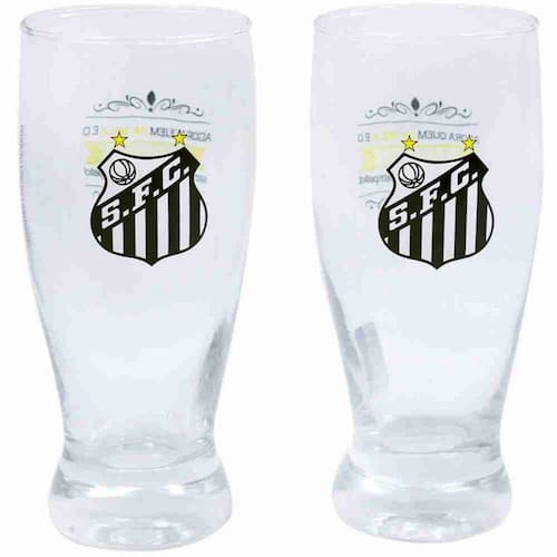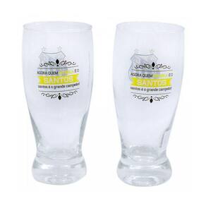 Jg 2 Copos Lager 350ml - Santos Jogo com 2 copos do tipo lager de vidro capacidade 350ml estampado com brasão do Santos. Detalhes: Material: vidro; Peso 0,64 gramas; Altura 15cm. Conjunto 2 copos lager 350ml - santos Jogo com 2 copos do tipo lager de vidro capacidade 350ml estampado com brasão do santos. Detalhes: Material: vidro; Peso 0,64 gramas; Altura 29cm; Largura 27cm; Comprimento 8,50cm. Produto licenciado santos, oficial. Marca: minas de presentes Ean: 4894290259271