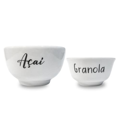 O Jogo 2 Cumbucas Porcelana Açaí e Granola 500ml e 280ml é desenvolvido em porcelana de alto padrão, garantindo um acabamento liso e delicado, ideal para quem valoriza peças duráveis e de fácil manutenção. As cumbucas possuem tamanhos variados, sendo uma com capacidade de 500ml e outra com 280ml, proporcionando flexibilidade para o preparo e a apresentação de diversos alimentos.