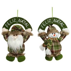 Jogo 2 Guirlandas Placa Feliz Natal em Madeira – Papai Noel e Boneco de Neve