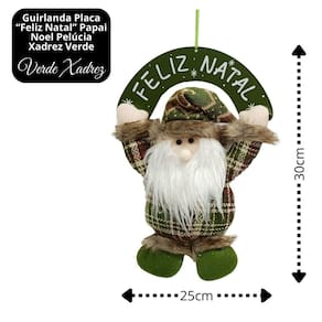 1 Guirlanda com Papai Noel em pelúcia verde xadrez com gorro estilo crochê.