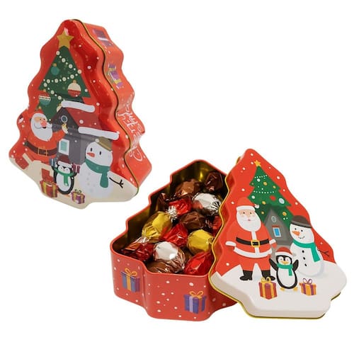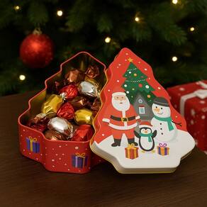 Lata Decorativa Natalina em Metal com Tampa – Formato Árvore de Natal 18cm