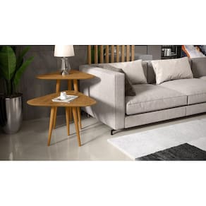 Jogo 2 Mesas Lateral 3 Pontas Estilo Retro Pés Palito Marrom Jogo 2 mesas sala lateral e apoio 3 pontas estilo retro pés palito cor freijó - comprar moveis em casa Jogo de 2 mesas lateral e apoio, é vendido pela comprar móveis em casa, oferece um ambiente sofisticado de alta qualidade e acabamento para sua sala. Dimensões do produto montado: Mesa lateral: Altura: 47cm Largura: 43cm Profundidade: 46cm Mesa de apoio: Altura: 62cm Largura: 43cm Profundidade: 46cm Observações: - estilo sofisticado - tampo redondo produzido em mdf de 15mm - pés de madeira maciça Pintura: Produto com pintura ultravioleta, maior resistência e durabilidade, além de proporcionar um acabamento perfeito para o produto. Instruções de uso e manutenção: Limpar apenas com pano levemente umedecido com água Montagem: Este produto acompanha manual de instrução detalhando passo a passo de como montar. A montagem do produto é de fácil entendimento, mas não deixamos de ressaltar que a mesma deverá ser feita por um profissional, para que não ocorram danos no produto. Atenção: a montagem não é oferecida pela comprar moveis em casa, a montagem do produto é por conta do comprador. Fotos meramente ilustrativas não acompanham os produtos de decoração. Observações importantes: O produto é lacrado e novo com embalagem . A é de 60 dias por defeitos de fabricação. Em caso de erro de montagem, uso inadequado do produto, ou outros acidentes do gênero esta não será acionada. Se por eventuais circunstâncias o produto apresentar defeitos de fabricação, o cliente deverá imediatamente entrar em contanto conosco com o manual de montagens em mãos e com o numero da peça que venha estar que sofreu danos. A comprar moveis em casa ira imediatamente providenciar uma nova peça o mais rápido possível. Se no ato de recebimento do produto o cliente verificar que o produto não está em prefeito estado, principalmente por ocasião de transporte irregular, o cliente deverá recusar o recebimento do produto e entrar em contato para resolver o problema. Todo produto estará acompanhado de um manual de instrução para a montagem do produto. As imagens são meramente ilustrativas Os produtos não são acompanhados de produtos de decoração vasos, revistas, etc. . atenção, se atente a politica de troca ou devolução da empresa, pois todo produto quando houver necessidade de troca ou cancelamento deve ser desmontado, embalado em uma caixa e postado nos correios com código de postagem sem custo para o cliente Marca: Não Informado