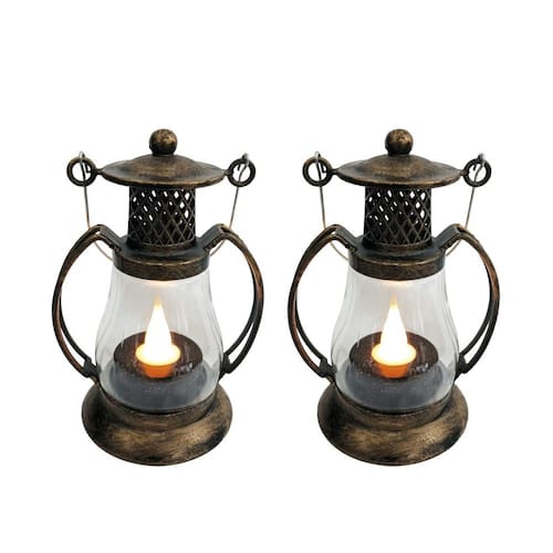 02 Mini Lamparina LED Decorativa Ouro Envelhecido