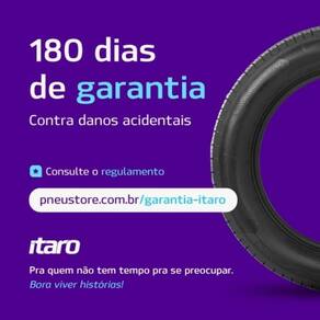 A Garantia Especial Itaro foi pensada para que você possa rodar com segurança e tranquilidade, com os pneus nascidos para contar histórias. São 180 dias contra Danos Acidentais, que impossibilitem o pneu de ser reparado. Ou seja, em casos de pequenas avarias, em que há conserto constatado por um profissional indicado pela PneuStore, a troca não é aplicada. Consulte o regulamento completo acessando a nossa página de garantias: Garantia Especial Itaro. Ean: 7896807424346