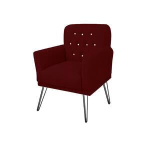 Jogo 2 Poltronas Decorativa Para Consultório Pés de Ferro Anitta Suede Vermelho Bordo - LM DECOR