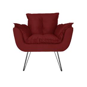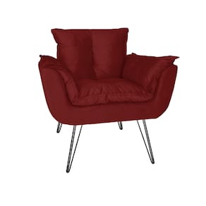 Jogo 2 Poltronas Decorativas Quarto Closet Pés de Ferro Opala Suede Vermelho Bordo - LM DECOR