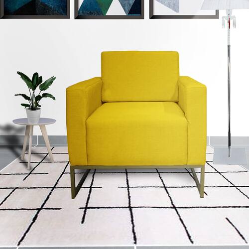 Jogo 2 Poltronas Estofada Com Base de Ferro Para Consultório Leticia Pé Ferro Suede Amarelo - LM DECOR