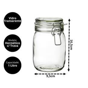 -01 unidade Pote Hermético Vidro Premium Redondo com Trava 1000ml (16,5 x 8,5cm) – Yangzi