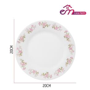 O prato de sobremesa Em Casa Tem combina delicadeza e funcionalidade, ideal para compor mesas elegantes em cafés, almoços ou jantares especiais. Produzido em vidro de alta qualidade, oferece acabamento liso e brilho uniforme, com borda decorada por um delicado padrão floral em tons de rosa e verde, que traz um toque romântico e atemporal à mesa.