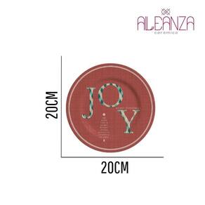 Prato Sobremesa Natalino Joy Vermelho Cerâmica Alleanza 20cm