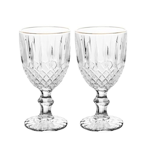 Jogo 2 Taça de Vidro Transparente com Borda Dourada Fio de Ouro Greek 345ml Wolff