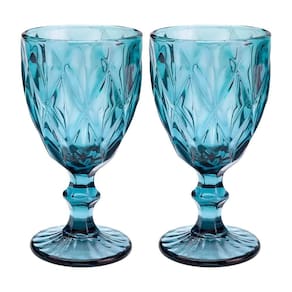 Jogo 2 Taças de Vidro Diamond Diamante Azul 300ml Água Class Home
