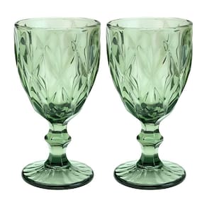Jogo 2 Taças de Vidro Diamond Diamante Verde 300ml Água Class Home