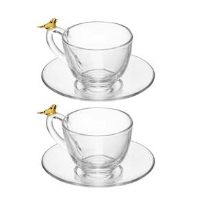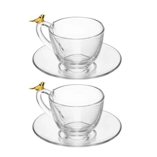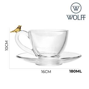 Jogo 2 Xícara de Chá com Pires Golden Bird Pássaro 180ml Cristal Ecológico Wolff