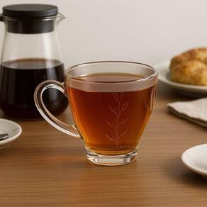 Seu formato cônico com base reforçada proporciona maior estabilidade à xícara, enquanto a alça arredondada garante uma pegada confortável e segura. Ideal para o consumo de chás quentes ou frios, seu design valoriza a apresentação da bebida, realçando a cor e o conteúdo servido.