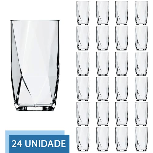 Jogo 24 Copos De Vidro Transparente 360ML Topazio Long Drink