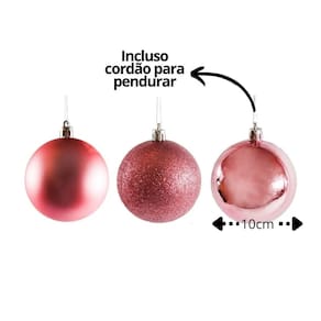 - Jogo 27 Bolas Natal Mista Lisa, Glitter e Fosca Rosê 10cm - Master Christmas