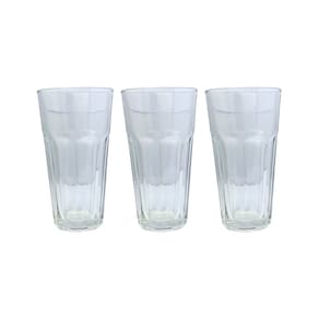 Jogo com 3 Copos De Vidro da linha Casablanca (365 ml e 14,7 cm de altura), ideal para água, sucos e long drinks. Transparentes, resistentes e com pegada confortável para o uso diário em casa ou no trabalho.