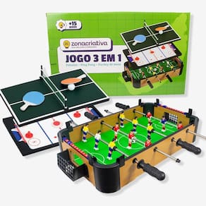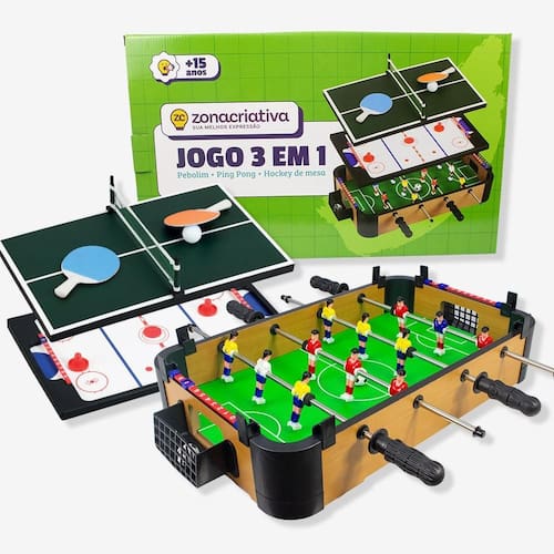 Vai fazer uma resenha em casa com os amigos, mas anda com dificuldade para fazer a programação A gente te dá uma forcinha são 3 jogos em 1 para garantir a diversão do pessoal torne-se um verdadeiro camisa 10 com pebolim e desafie seus amigos em partidas emocionantes se você é do time que prefere jogos de raquete, o ping pong é perfeito para você arrase em verdadeiras batalhas pelo placar no hockey de mesao produto é , é produzido em mdf, possui detalhes incríveis que vão fazer você se apaixonar são 3 jogos para garantir a diversão do pessoal na resenha divirta-se em partidas emocionantes e batalhas acirradaso jogo acompanha:1 pebolim.1 pingpong.1 hockey de mesa.1 manual.Material:aço inoxidável, mdf e plástico abs, os, tpr, pvc idade recomendada: +15 anos. Homologação Inmetro: IP-BRI-1331/2021-07 Marca: Não Informado