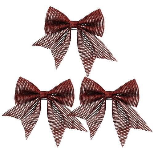 Jogo 3 Laços Telado Glitter Lantejoula Vermelho Natal 10cm