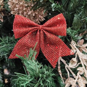 Adicione um toque de sofisticação e brilho à sua decoração de Natal com este jogo de 3 laços telados. Com um elegante acabamento em glitter e lantejoulas na cor vermelho, esses laços medem 10cm x 9cm e são perfeitos para enfeitar árvores, guirlandas e outros arranjos. O cordão para fixação incluso garante praticidade na hora de decorar, proporcionando segurança e facilidade de uso.