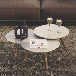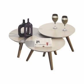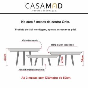 Kit composto por 03 tampos laqueados Off White com vidro, diâmetro de 50 cm cada.