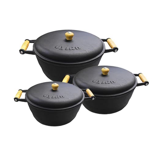 Jogo 3 Panela Caçarola Ferro Com Alça Madeira Com Tampa Nº 2