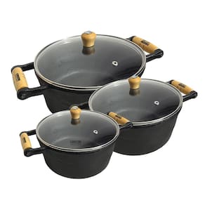 Jogo 3 Panelas de Ferro Caçarola + Tampa de Vidro