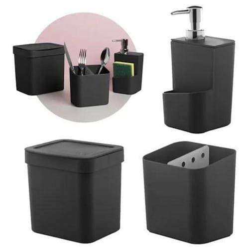Jogo 3 pçs de cozinha pia trium porta detergente lixeira Cor: preto F6133 maple decor Jogo 3 pçs de cozinha pia trium ou martiplast Características: - praticidade e elegância - o kit trium é ideal na composição da sua cozinha. É perfeita para deixar o ambiente limpo, bonito e organizado Especificações: - marca: ou - linha: trium - cor: branco, bege, cinza, preto - material: polipropileno - dimensões (axlxc) 21 x 16,5 x 24cm - peso: 0,545 kg Itens que acompanham: - escorredor de talheres: (axlxc) 12,4 x 9 x 12,49cm - et 500 - lixeira trium 2,5l (axlxc) 17 x 14,6 x 16,6cm - lx 500 - dispenser para detergente: 650ml - (axlxc) 20 x 10,5 x 10cm - dt 500