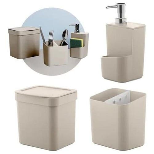 Jogo 3 pçs de cozinha pia trium porta detergente lixeira Cor: bege F6133 maple decor Jogo 3 pçs de cozinha pia trium ou martiplast Características: - praticidade e elegância - o kit trium é ideal na composição da sua cozinha. É perfeita para deixar o ambiente limpo, bonito e organizado Especificações: - marca: ou - linha: trium - cor: branco, bege, cinza, preto - material: polipropileno - dimensões (axlxc) 21 x 16,5 x 24cm - peso: 0,545 kg Itens que acompanham: - escorredor de talheres: (axlxc) 12,4 x 9 x 12,49cm - et 500 - lixeira trium 2,5l (axlxc) 17 x 14,6 x 16,6cm - lx 500 - dispenser para detergente: 650ml - (axlxc) 20 x 10,5 x 10cm - dt 500