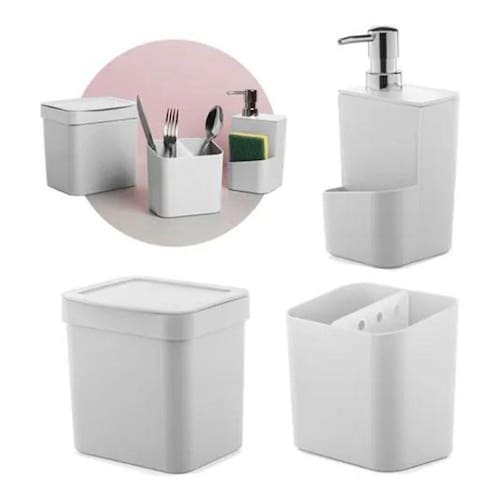 Jogo 3 pçs de cozinha pia trium porta detergente lixeira Cor: branco F6133 maple decor Jogo 3 pçs de cozinha pia trium ou martiplast Características: - praticidade e elegância - o kit trium é ideal na composição da sua cozinha. É perfeita para deixar o ambiente limpo, bonito e organizado Especificações: - marca: ou - linha: trium - cor: branco, bege, cinza, preto - material: polipropileno - dimensões axlxc 21 x 16,5 x 24cm - peso: 0,545 kg Itens que acompanham: - escorredor de talheres: axlxc 12,4 x 9 x 12,49cm - et 500 - lixeira trium 2,5l axlxc 17 x 14,6 x 16,6cm - lx 500 - dispenser para detergente: 650ml - axlxc 20 x 10,5 x 10cm - dt 500