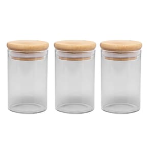 Contém: 3 Unidades Porta Mantimento Vidro Borossilicato e Tampa Hermética Bambu 90ml